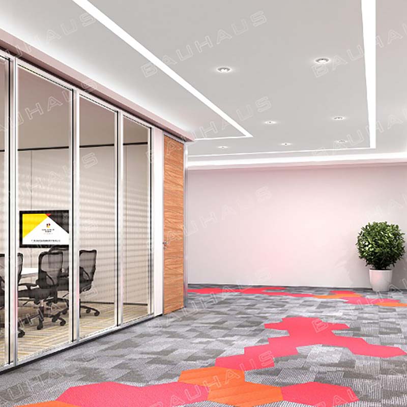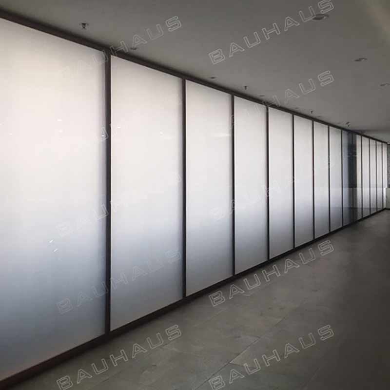 Wall appearance: the wall is 100mm thick, the upper rail is 25mm high, the lower rail is 40mm high, the glass frame is 25mm wide, and the module spacing is 6mm.